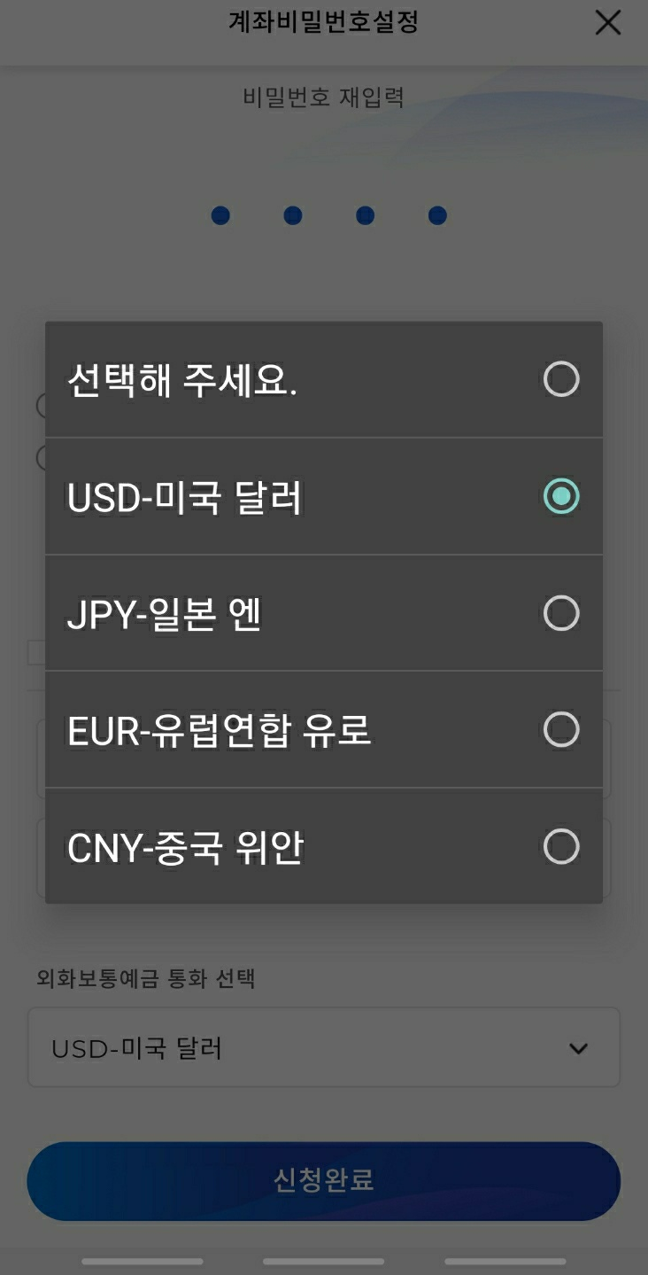 외화계좌 개설 후에 어플 초기화면에 들어가면