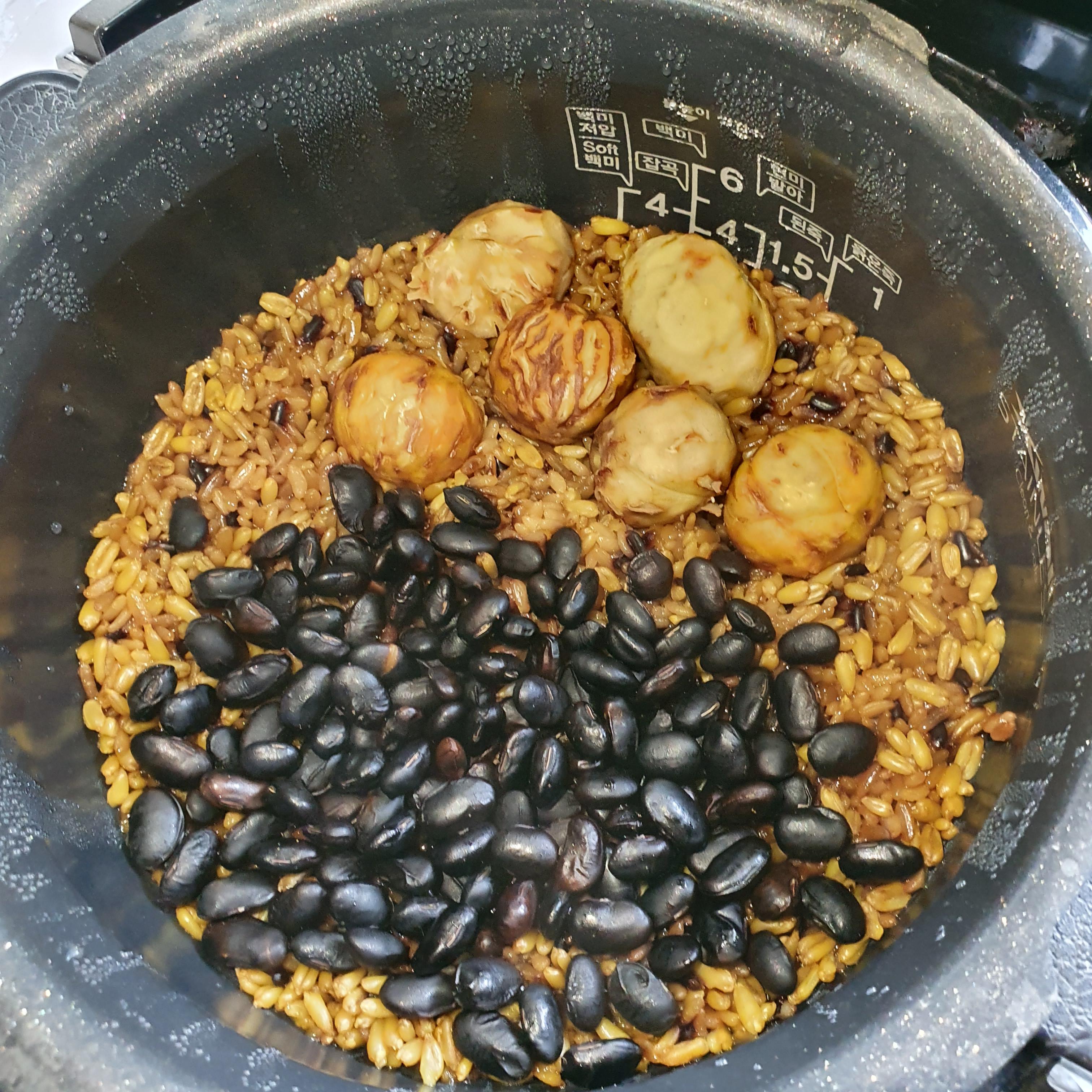위와 같이 밥 할 때 깐 밤을 몇 개 넣어주고 밥과 함께